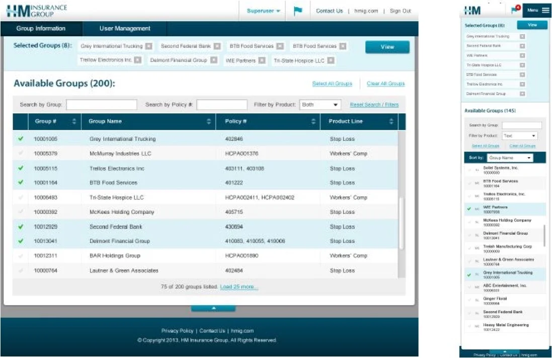 HM Insurance Group had previously supported their insurance agents and direct consumers through multiple public sites and a separate secure claims web application. I directed and designed a solution that brought these dissimilar products together into one responsive web presence.